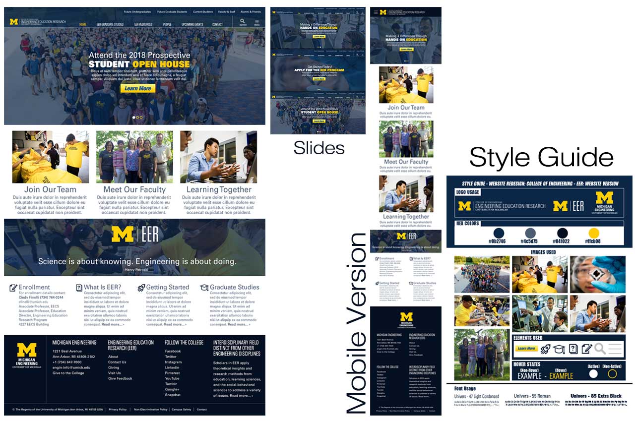 Mock-Up recreation with updated customization for a front-end U of M website home page. The un-used design was for a second round interview with the University. I ultimately was not awarded the position, however I enjoyed creating all the custom design elements.